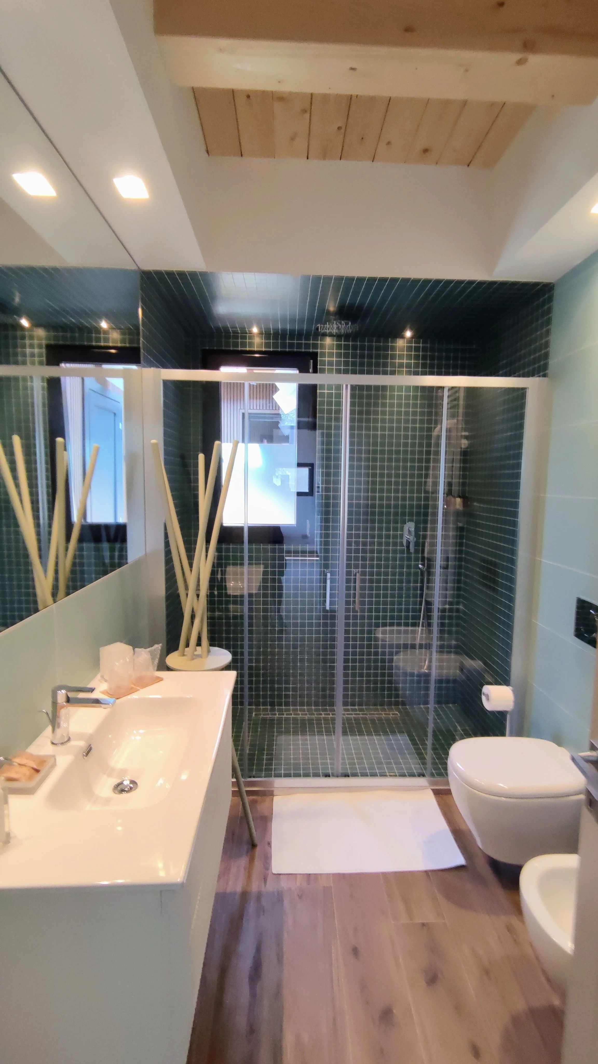 Bathroom: shower box with rain head, bidet, hair dryer and courtesy kit. Washing machine, iron, ironing board, drying rack and vacuum.
